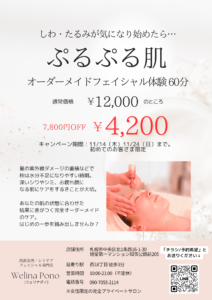 一番人気の「オーダーメイドフェイシャル」が60分4200円でご案内できます😊